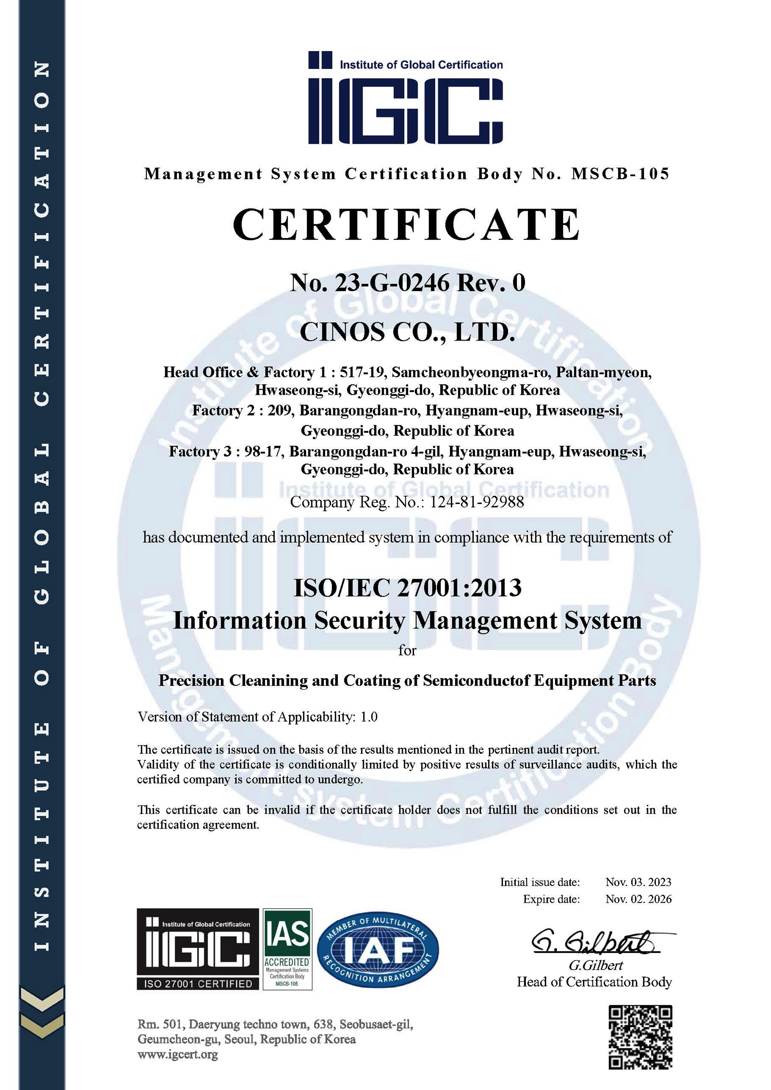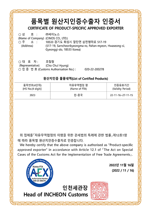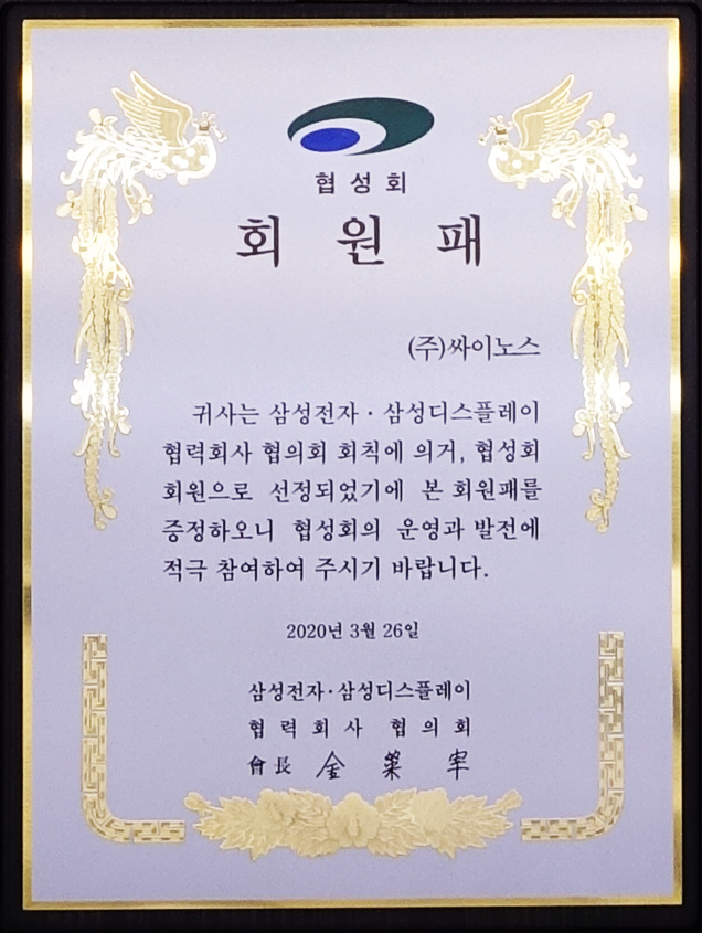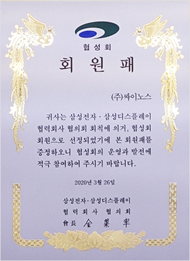 CINOS企业是唯一加入协星会的优秀专业清洗企业, 是拥有三星电子协星会中优秀技术和竞争力的企业,有200多个私企加入、正在运营的协商体。